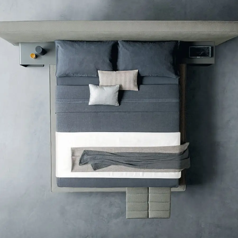 Łóżko tapicerowane Bora to współczesne wzornictwo znakomicie pasujące do minimalistycznych wnętrz. Rama w estetyczny sposób komponuje się z obszernym wezgłowiem, które nadaje całości eleganckiego wyglądu. Łóżko wyposażone jest w praktyczny pojemnik na pościel. Pokrowiec łóżka Bora jest luźny. W bardzo prosty sposób przypina się go do ramy oraz zagłówka za pomocą rzepów.