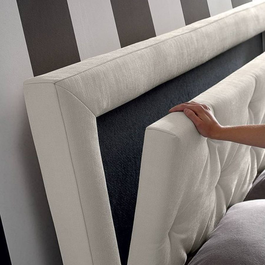 Łóżko tapicerowane Gabi to nowoczesne łóżko do sypialni o minimalistycznym designie, Charakterystyczne wezgłowie posiada dekoracyjną ramę dostępną w trzech wariantach wykończenia: Déco, Plissé lub Imperial, co pozwala całkowicie zmienić styl mebla i dopasować go do aranżacji wnętrza. Łóżko wyposażone jest w praktyczny, podnoszony pojemnik na pościel. Zdejmowany pokrowiec mocowany jest do ramy i zagłówka za pomocą rzepów, co ułatwia użytkowanie.