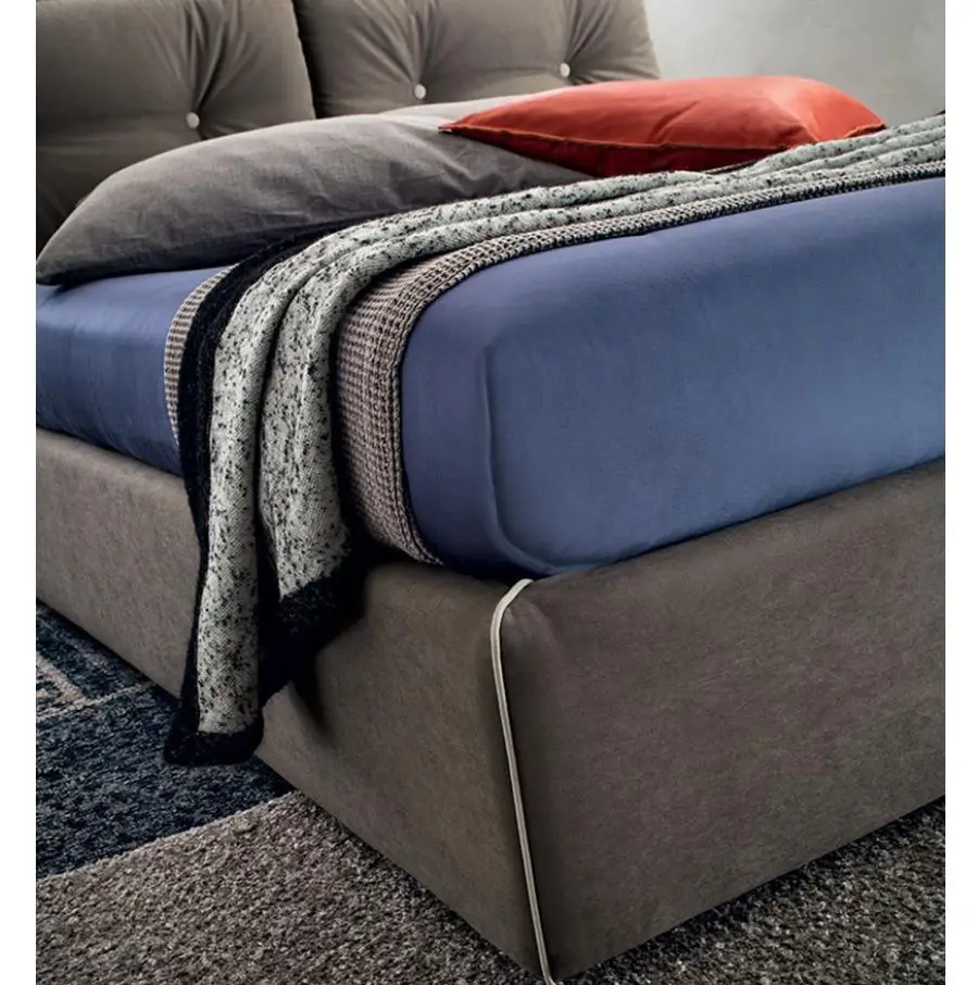 Kaja to eleganckie łóżko z tapicerowanym wezgłowiem imitującym dwie duże poduchy. Stanowią integralną część zagłówka, lecz można je w każdej chwili odpiąć i ułożyć pod kątem zapewniającym wygodną pozycję do czytania. Dodatkowe przeszycia czy dwa charakterystyczne guziki w poduszce podkreślają nietuzinkowy charakter prezentowanego łóżka. Łóżko wyposażone jest w praktyczny, podnoszony pojemnik na pościel. Pokrowiec łóżka Kaja jest luźny. W bardzo prosty sposób przypina się go do ramy oraz zagłówka za pomocą rzepów.