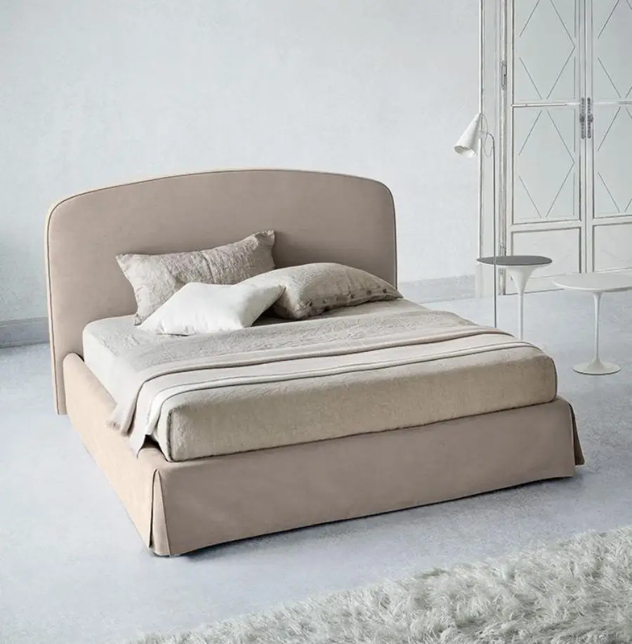 Łóżko tapicerowane Roma to współczesne wzornictwo znakomicie pasujące do minimalistycznych, wnętrz. Łóżko wyposażone jest w praktyczny, podnoszony pojemnik na pościel. Pokrowiec łóżka Roma jest luźny. W bardzo prosty sposób przypina się go do ramy oraz zagłówka za pomocą rzepów.