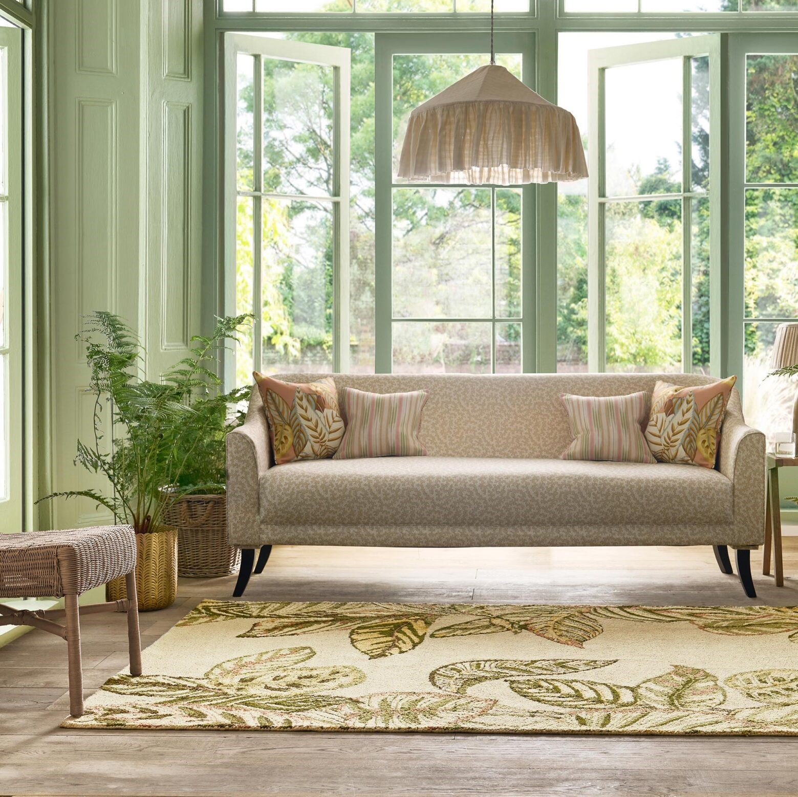 Ręcznie tuftowana powierzchnia o gramaturze 2600 g/m² zapewnia miękkość i odporność na codzienne użytkowanie, a nowoczesna struktura sprawia, że dywan łatwo utrzymać w czystości - wystarczy przetrzeć go wilgotną ściereczką. Dzięki wyjątkowemu wzornictwu i beżowo-zielonej tonacji, model Calathea Samphire harmonijnie wpisuje się również w aranżacje wnętrz; od salonu po oranżerię.