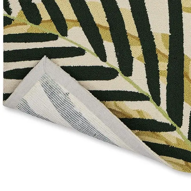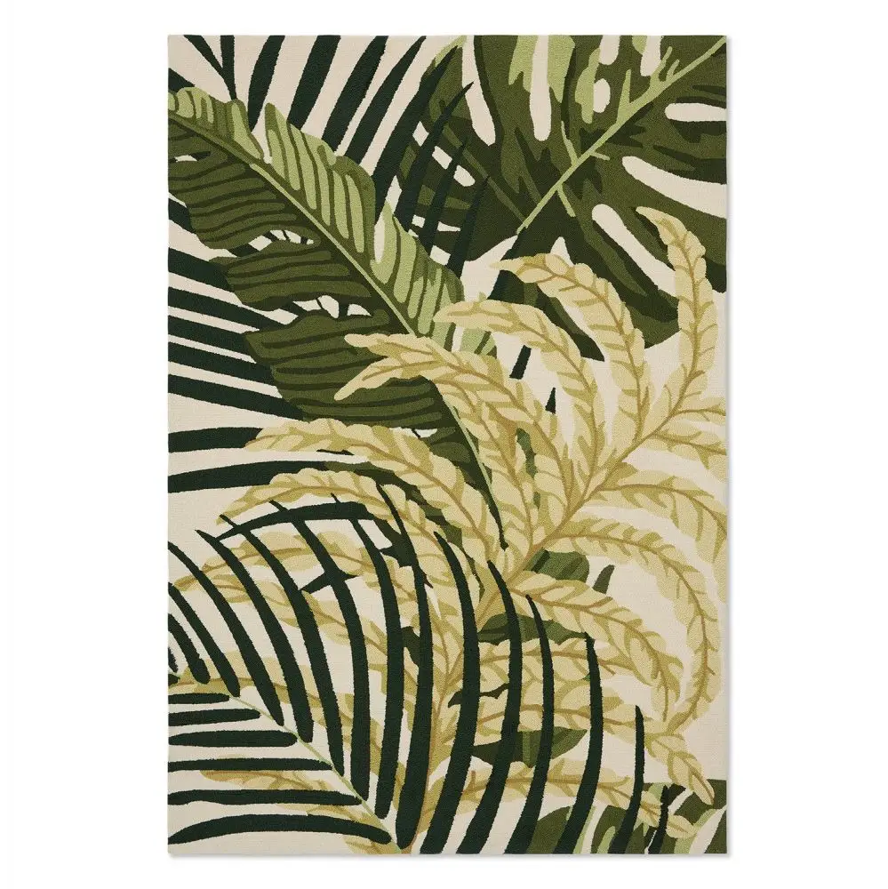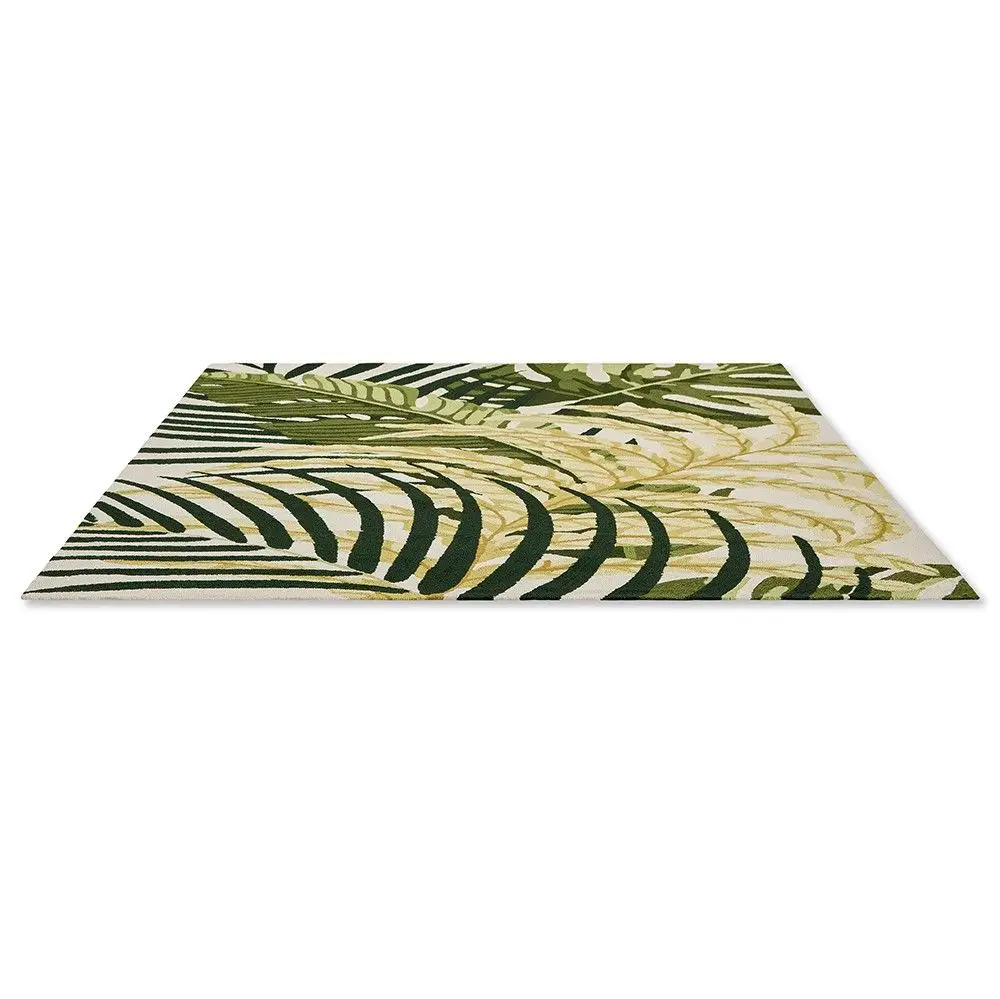 Beżowo-zielony dywan zewnętrzny w liście MANILA ARTICHOKE 446407 marki Sanderson to połączenie elegancji, natury i funkcjonalności. Inspirowany tropikalną roślinnością, zachwyca bogatym wzorem liści w odcieniach beżu i zieleni, które wnoszą do przestrzeni świeżość i lekkość. Wykonany z trwałego poliestru z recyklingu o gramaturze 2600 g/m², jest odporny na słońce, deszcz i odkształcenia, co czyni go idealnym wyborem na taras, balkon czy ogród.