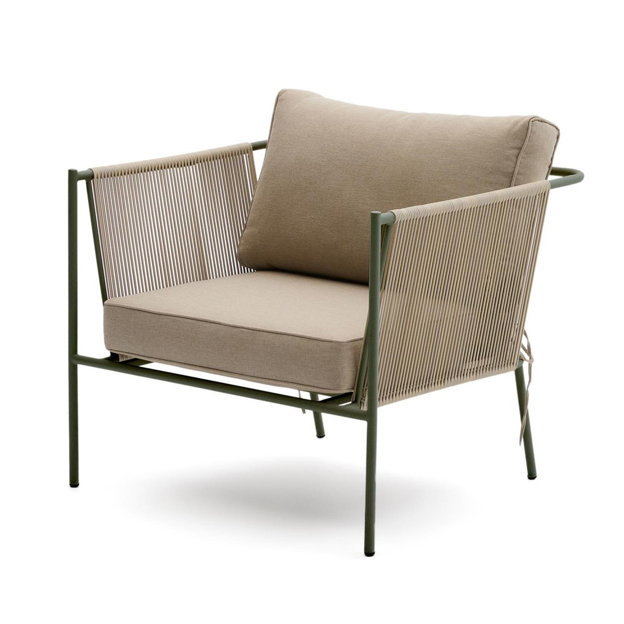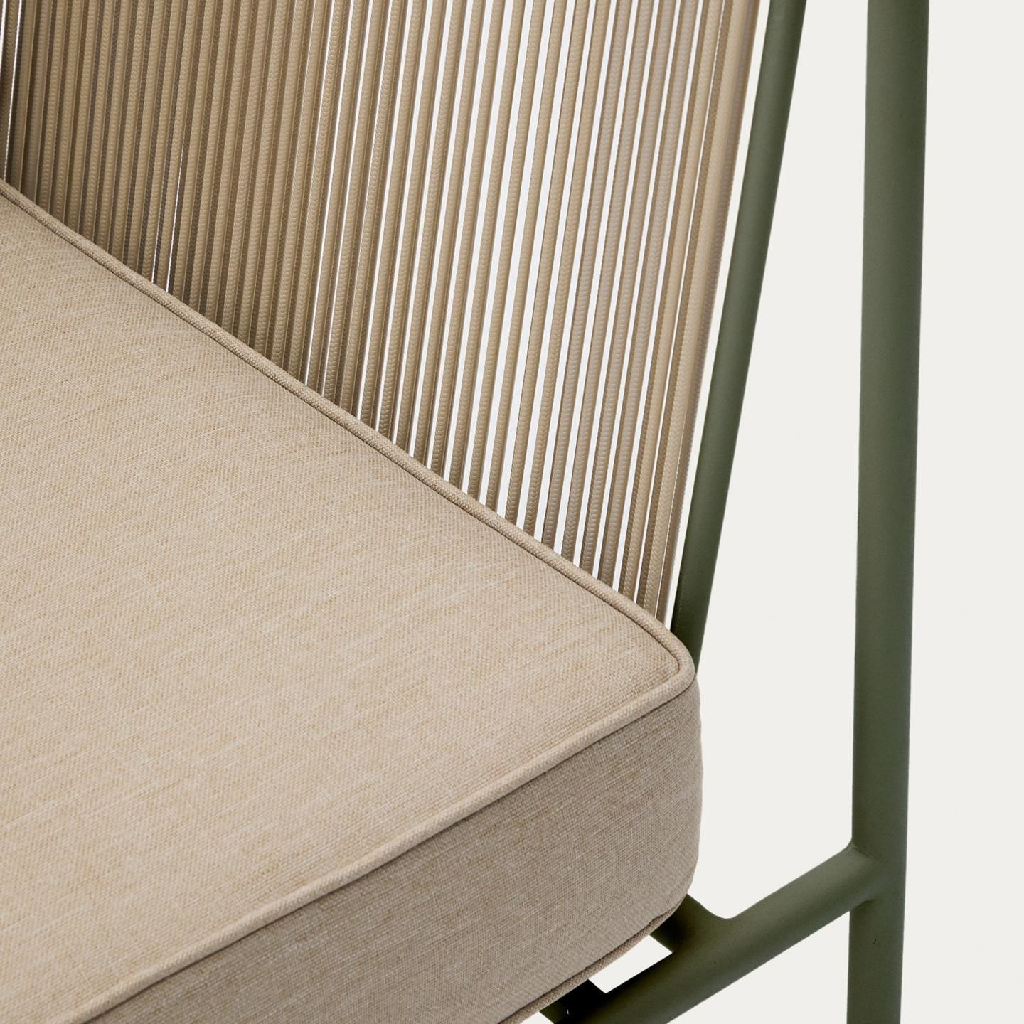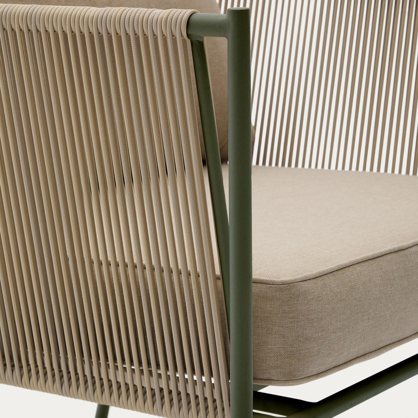 Fotel ogrodowy Kave Home Zivia to nowoczesne połączenie designu, trwałości i komfortu, stworzone z myślą o wymagających przestrzeniach outdoor i indoor. Minimalistyczna forma oraz stonowana kolorystyka wpisują się w aktualne trendy aranżacyjne, idealnie uzupełniając taras, balkon, ogród czy nowoczesne wnętrza. Ręcznie pleciona lina syntetyczna nadaje konstrukcji lekkości i elegancji, a jednocześnie zapewnia wysoką odporność na działanie promieni UV oraz wilgoci.