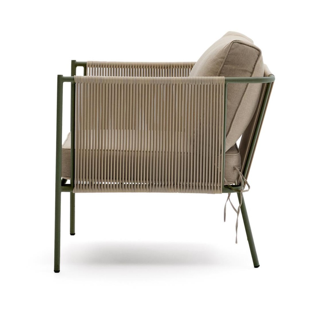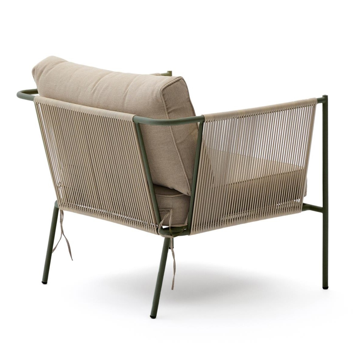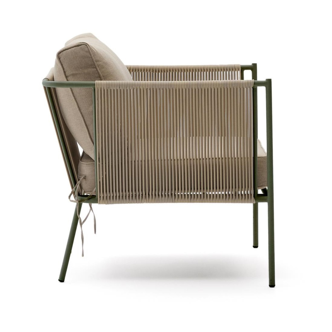 Fotel ogrodowy Kave Home Zivia to nowoczesne połączenie designu, trwałości i komfortu, stworzone z myślą o wymagających przestrzeniach outdoor i indoor. Minimalistyczna forma oraz stonowana kolorystyka wpisują się w aktualne trendy aranżacyjne, idealnie uzupełniając taras, balkon, ogród czy nowoczesne wnętrza. Ręcznie pleciona lina syntetyczna nadaje konstrukcji lekkości i elegancji, a jednocześnie zapewnia wysoką odporność na działanie promieni UV oraz wilgoci.