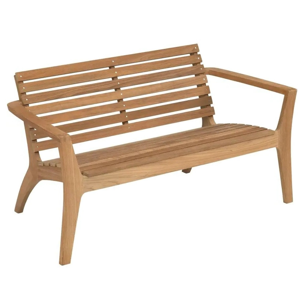 Piękna ławka z podłokietnikami z katalogu renomowanej, duńskiej marki Skagerak. Idealna do ogrodu lub na taras. Ławka w całości wykonana została z litego, niezwykle wytrzymałego drewna teak.