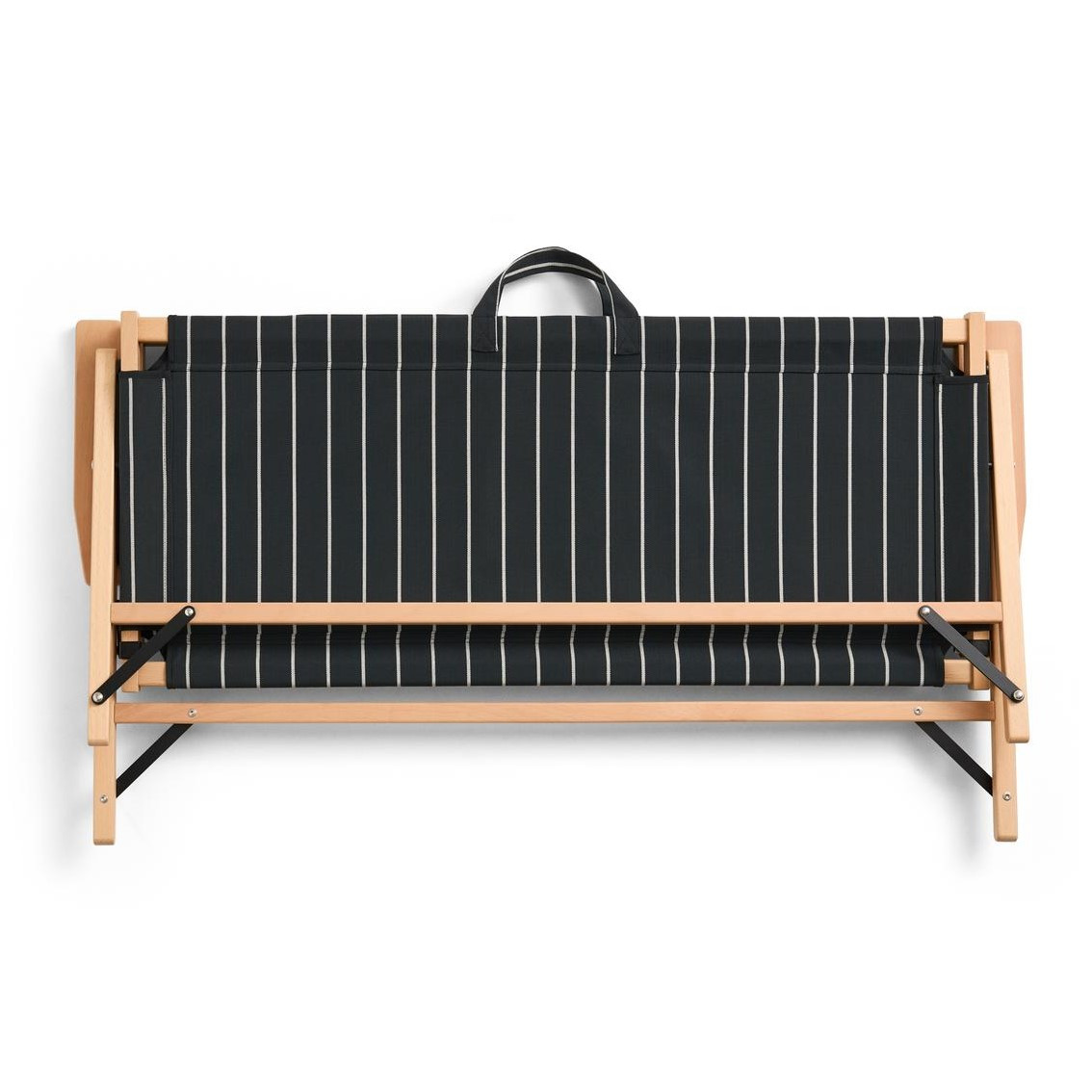 Sofa ogrodowa z kolekcji Outdoor Market duńskiej marki HAY. Lekka, mobilna i bardzo stylowa, zaprojektowana z myślą o swobodnym, nowoczesnym wypoczynku na świeżym powietrzu. Minimalistyczna konstrukcja łączy funkcjonalność z charakterystyczną dla HAY estetyką skandynawskiego designu. Stelaż wykonany z lekkiego drewna bukowego FSC™ 100% zapewnia stabilność przy zachowaniu niskiej wagi, a siedzisko z tkaniny z recyklingowanego poliestru w paskowanym wzorze nadaje całości współczesny, graficzny charakter.