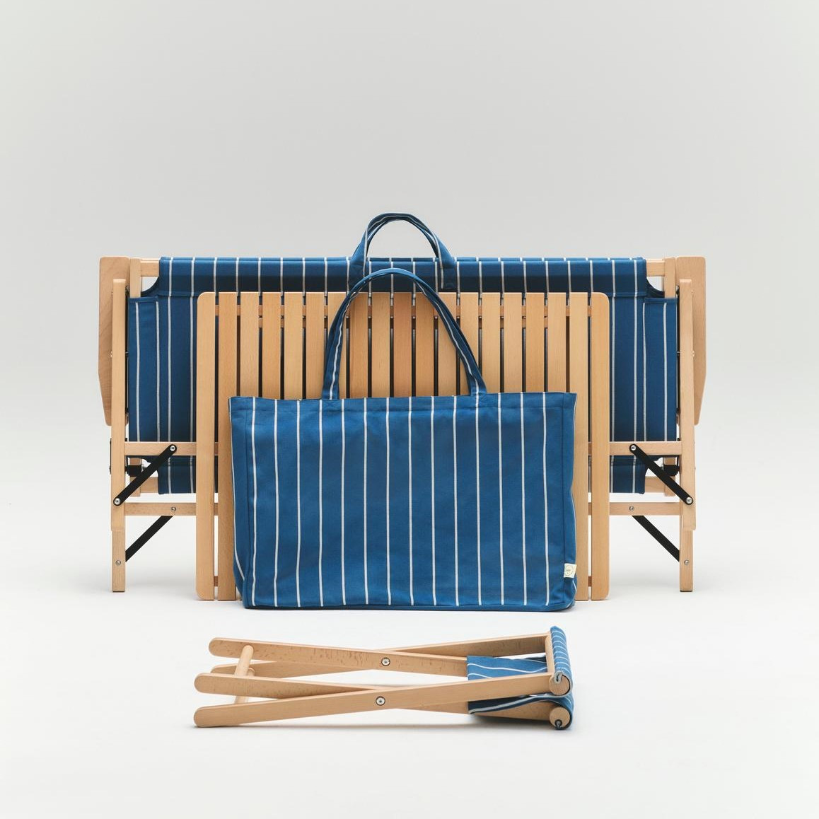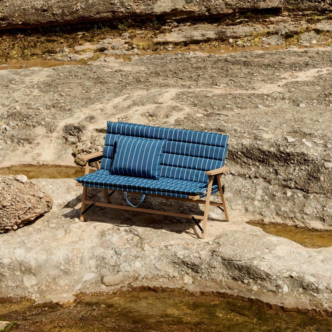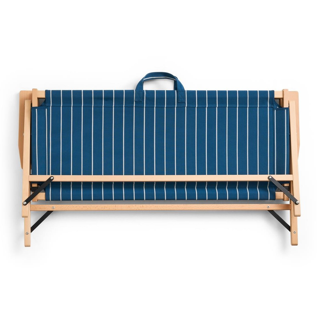 Sofa ogrodowa z kolekcji Outdoor Market duńskiej marki HAY. Lekka, mobilna i bardzo stylowa, zaprojektowana z myślą o swobodnym, nowoczesnym wypoczynku na świeżym powietrzu. Minimalistyczna konstrukcja łączy funkcjonalność z charakterystyczną dla HAY estetyką skandynawskiego designu. Stelaż wykonany z lekkiego drewna bukowego FSC™ 100% zapewnia stabilność przy zachowaniu niskiej wagi, a siedzisko z tkaniny z recyklingowanego poliestru w paskowanym wzorze nadaje całości współczesny, graficzny charakter.
