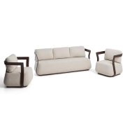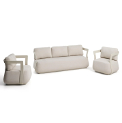Zestaw ogrodowy Tamaris (3-osobowa sofa + 2 fotele) to nowoczesne rozwiązanie premium do przestrzeni zewnętrznych i wewnętrznych. Zestaw ogrodowy Kave Home łączy miękką, otulającą formę z lekką i wytrzymałą konstrukcją z aluminium odporną na rdzę, korozję i promieniowanie UV. Siedziska wyposażono w komfortowe poduszki z tkaniny o właściwościach hydrofobowych, które ograniczają wchłanianie wody. Poduszki oparć posiadają zdejmowane pokrowce, co ułatwia czyszczenie i codzienną pielęgnację. Dodatkowo zastosowano powłoki i rozwiązania przystosowane do użytkowania na zewnątrz.