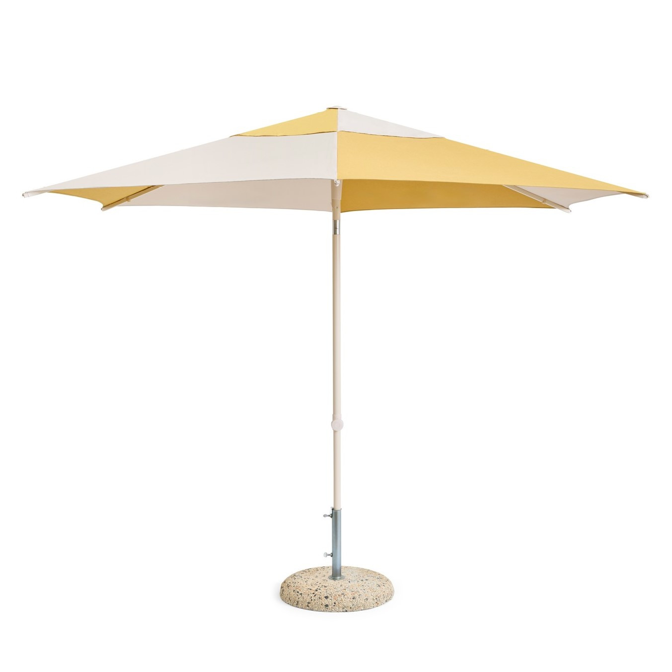 Terrazza Hexagon to nowoczesny parasol ogrodowy o graficznym, dwutonowym wzornictwie inspirowanym naturą. Połączenie złamanej bieli i ochry tworzy spokojny, harmonijny efekt, który doskonale wpisuje się w przestrzenie outdoorowe – od minimalistycznych tarasów po zielone ogrody i balkony miejskie. Wykonany z trwałej tkaniny 100% olefin, odpornej na promieniowanie UV i blaknięcie, zapewnia długotrwałą ochronę przed słońcem i stabilność koloru. Konstrukcja z aluminium, stali i PP gwarantuje lekkość, wytrzymałość oraz łatwość użytkowania.