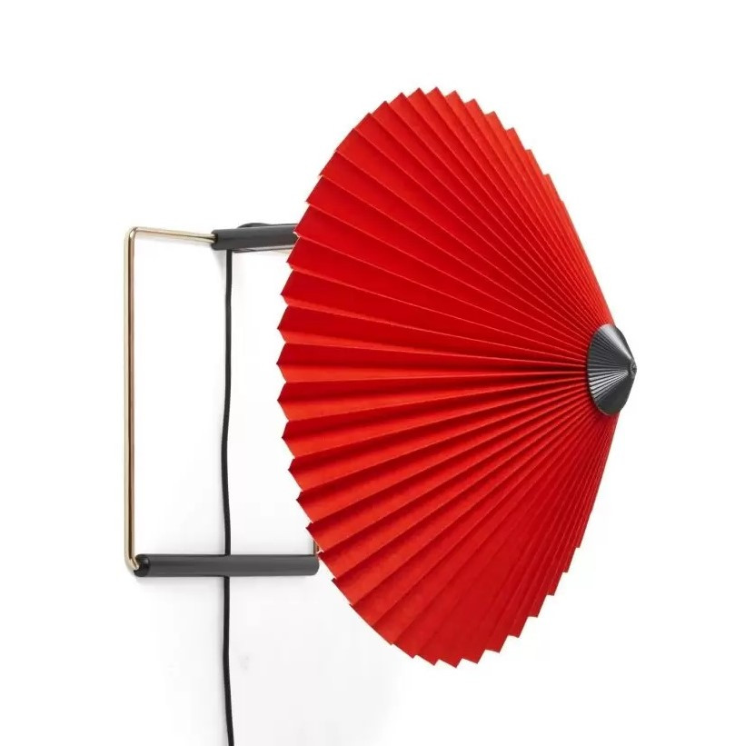 Matin to współczesny, poetycki design z konstrukcją, która łączy wizualną delikatność z fizyczną solidnością. Główkę lampy można odchylić pod kątem około 45 stopni zarówno w górę, jak i w dół. Konstrukcja naścienna składa się z wygiętej, stalowej ramy z matowym, czarnym osprzętem i jest połączona z plisowanym, bawełnianym kloszem.