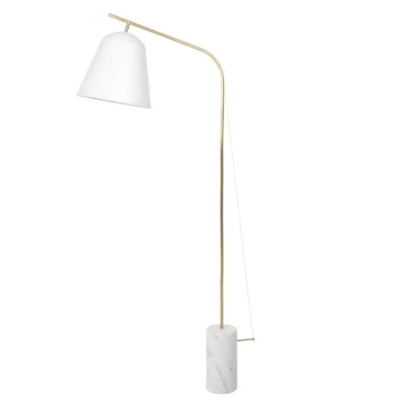 Lampa podłogowa Line Two marki Norr 11 to ręcznie wykonany element o wyjątkowej formie, który wprowadza elegancję i nowoczesny design do każdego wnętrza. Masywna marmurowa podstawa w połączeniu ze smukłym, mosiężnym ramieniem oraz aluminiowym kloszem tworzy lampę, która zachwyca zarówno wyglądem, jak i solidnością wykonania.
