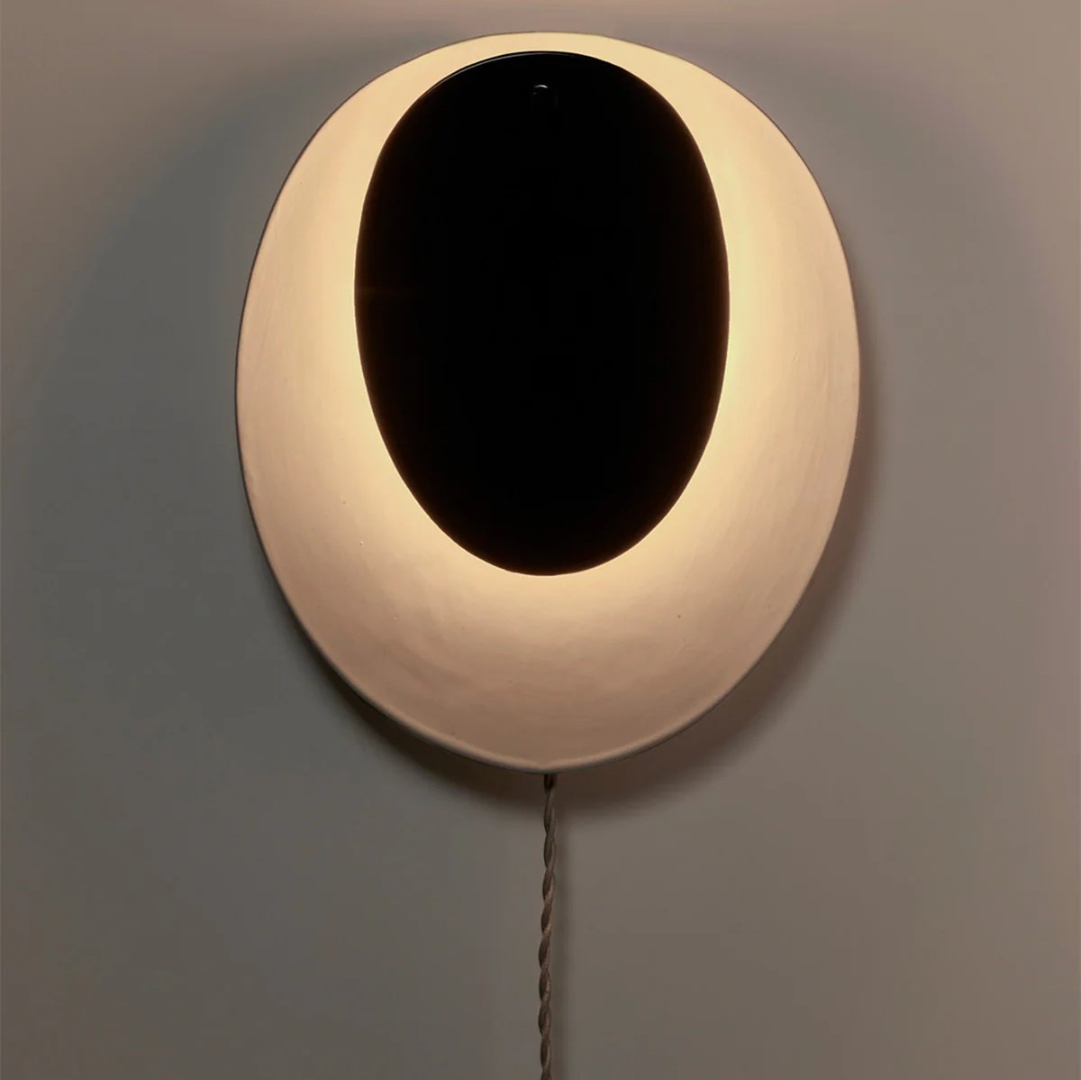 Lampa ścienna Nebula 02 marki Serax to połączenie światła i ręcznie wykańczanej ceramiki, które tworzy przytulny, kojący klimat w sypialni, salonie czy korytarzu. Dwie zaokrąglone formy przypominają świetliste mgławice, a elegancka biel glazury połączona z kontrastującą czernią nadają lampie miękkie, rozproszone światło podkreślają unikatowy charakter każdego egzemplarza.