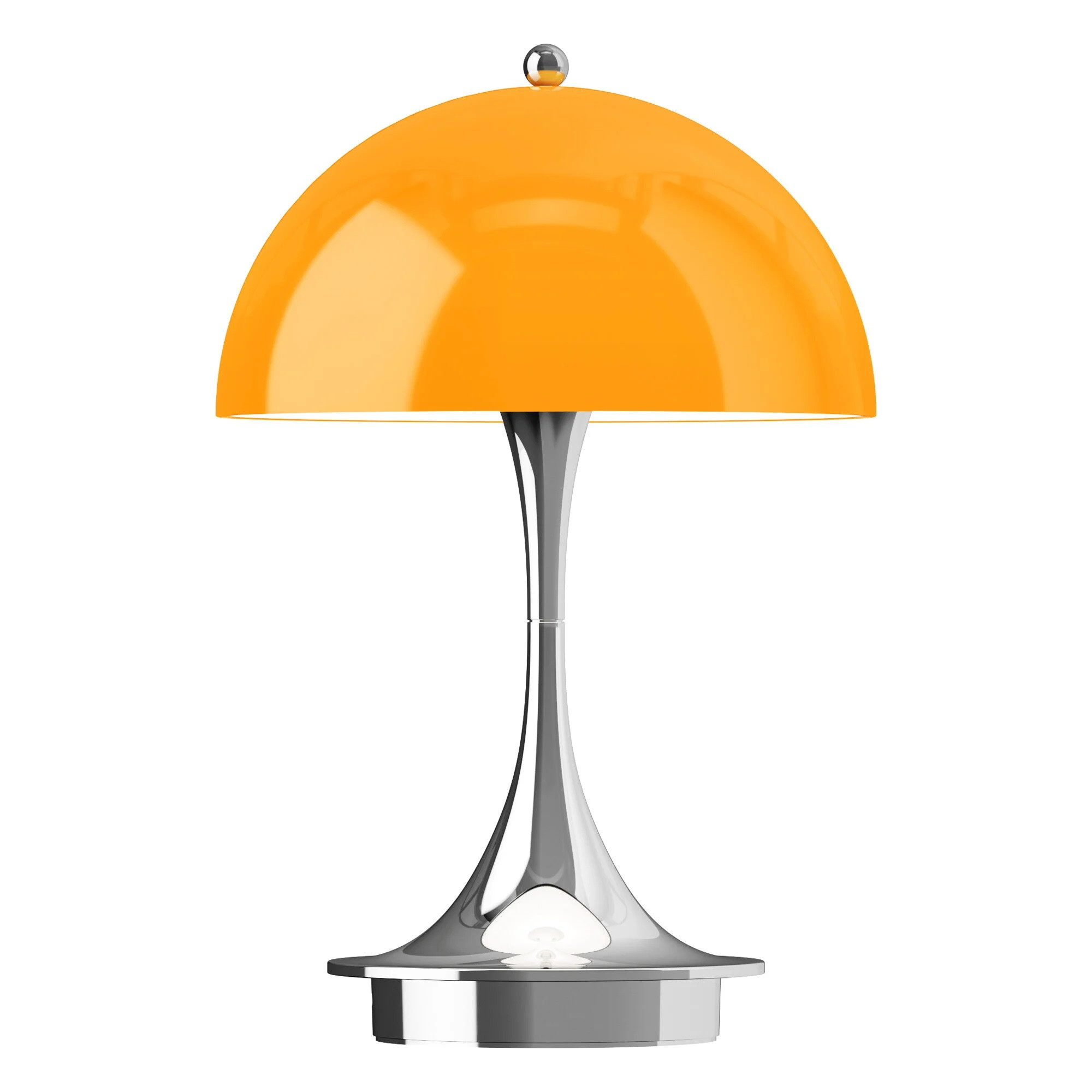 Panthella Portable The Originals emituje ciepłe światło LED 2700K o mocy 2,5 W. Opalowy klosz barwiony w masie delikatnie rozprasza światło, tworząc nastrojową i komfortową atmosferę. Subtelna transparentność materiału oraz odbicie światła od charakterystycznej, trąbkowej podstawy budują przyjemne, harmonijne oświetlenie. Lampa wyposażona jest w dotykowy włącznik, funkcję stopniowego ściemniania, akumulator ładowany przez USB-C oraz klasę szczelności IP44.