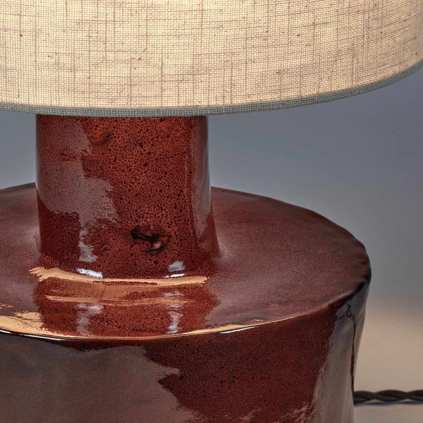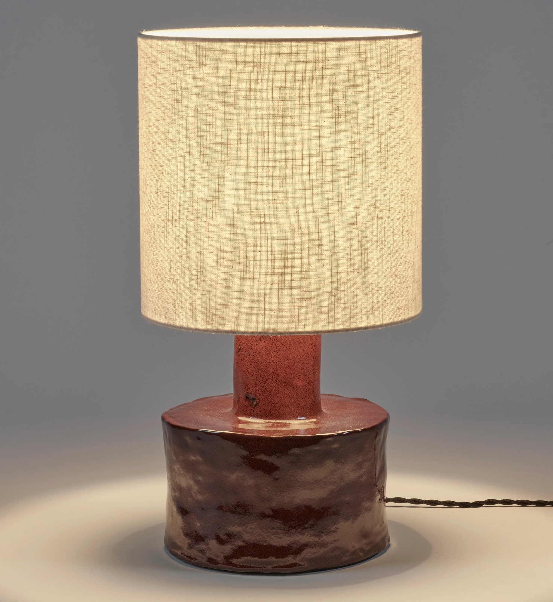 Lampa stołowa Catherine belgijskiej marki Serax, zaprojektowana przez Marie Michielssen, łączy ręcznie formowaną podstawę z czerwonej kamionki z beżowym abażurem o spokojnej, czystej linii. Solidna kamionka nadaje konstrukcji stabilność i charakter, a delikatna struktura materiału podkreśla rzemieślnicze wykonanie. Naturalne, drobne nieregularności wykończenia są wynikiem pracy ręcznej i świadczą o unikatowości każdego egzemplarza.