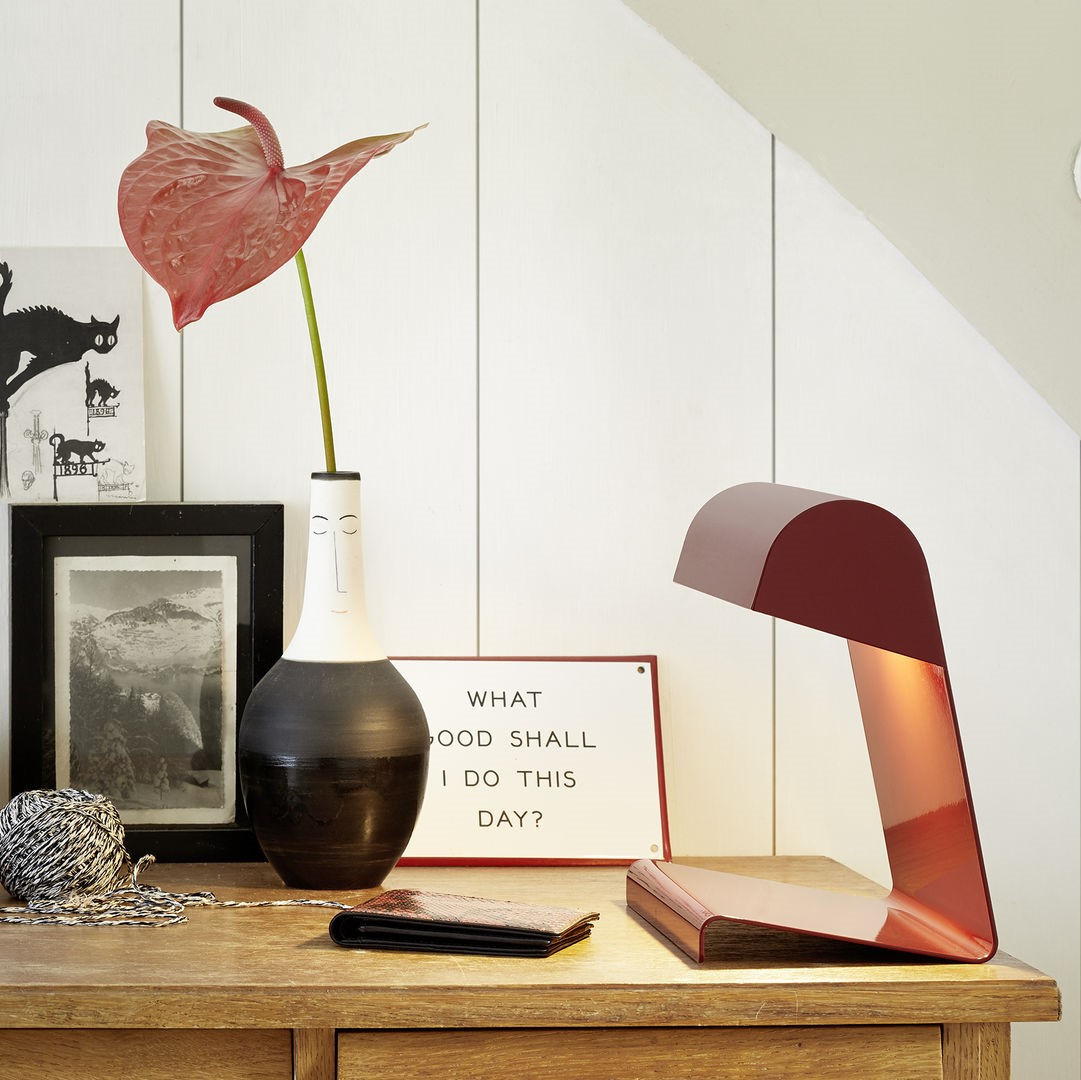 Lampe de Bureau projektu Jeana Prouvé z 1930 roku to ikona funkcjonalnego modernizmu w miniaturowej formie. Zaprojektowana pierwotnie do akademików Cité Universitaire w Nancy, dziś stanowi ponadczasowy przykład praktycznego piękna. Wykonana z giętej, stalowej blachy malowanej proszkowo, subtelnie odbija światło, tworząc przyjemne, skupione oświetlenie na biurku lub stoliku nocnym. Lampa wyposażona jest w oprawkę E14, żarówkę LED o ciepłej barwie światła 2700 K oraz wtyczkę typu C (EU).