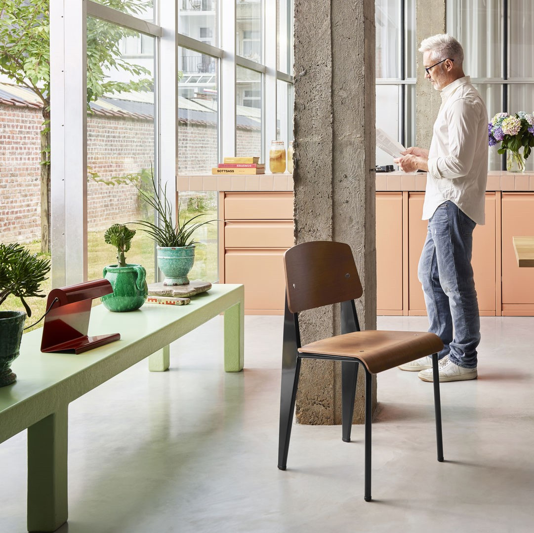 Jean Prouvé był jednym z najbardziej wpływowych francuskich projektantów i inżynierów XX wieku – wizjonerem, który zatarł granice między sztuką, rzemiosłem i przemysłem. Ukończył naukę jako kowal, ale szybko przeniósł swoje doświadczenie w pracy z metalem na grunt architektury i designu. W swoich projektach od mebli po prefabrykowane budynki łączył estetykę funkcjonalizmu z inżynieryjną precyzją. Wierzył, że „piękno wynika z konstrukcji”, dlatego jego prace, jak Lampe de Bureau, Standard Chair czy Maison Tropicale, zachwycają logiką formy i prostotą wykonania. Prouvé pozostaje symbolem nowoczesnego myślenia o designie - szczerego, praktycznego i ponadczasowego.