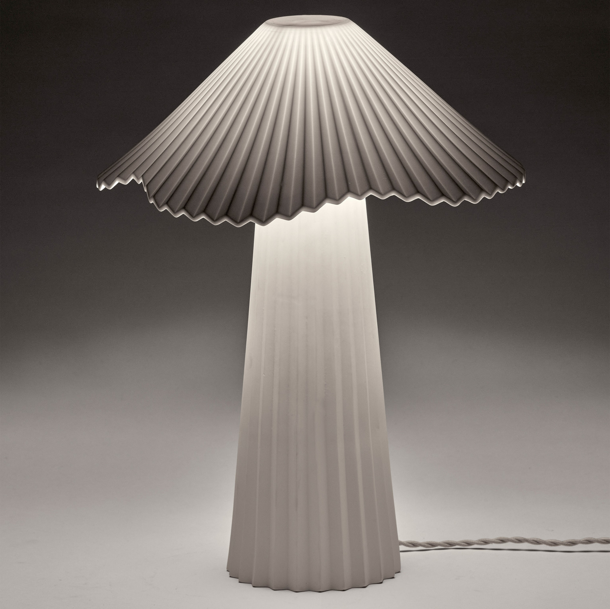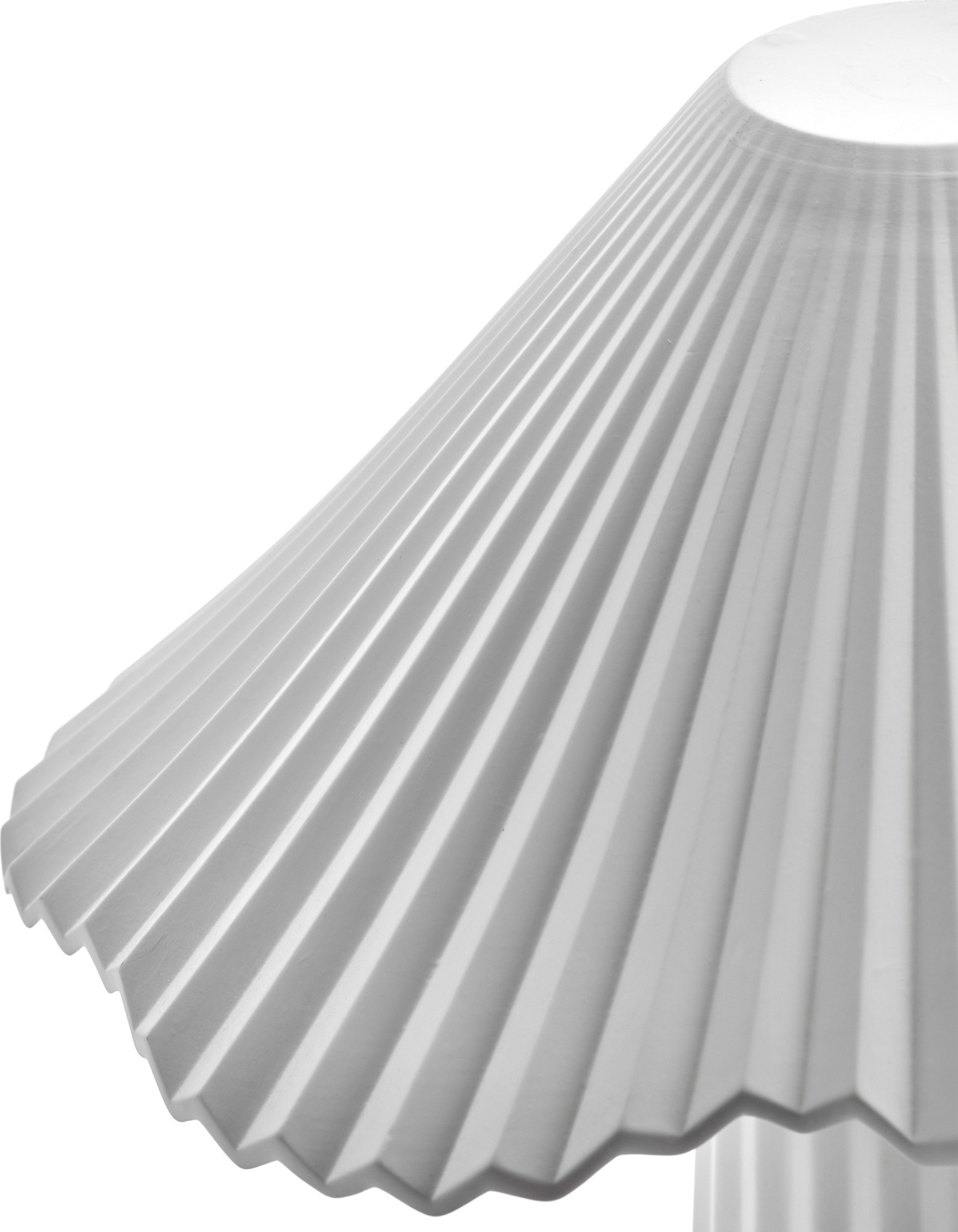 Lampa stołowa Uala Serax urzeka elegancką formą i szlachetnym materiałem, jakim jest porcelana kostna. Delikatnie rzeźbiony, ręcznie formowany klosz inspirowany wachlarzowymi liśćmi Licuala Grandis tworzy subtelne światło, które pięknie rozprasza się we wnętrzu, podkreślając jego strukturę i naturalne niedoskonałości, będące znakiem unikatowego rzemiosła. Uala idealnie sprawdza się w sypialni, salonie, na komodzie czy stoliku nocnym, wszędzie tam gdzie liczy się nastrojowe, dekoracyjne oświetlenie.