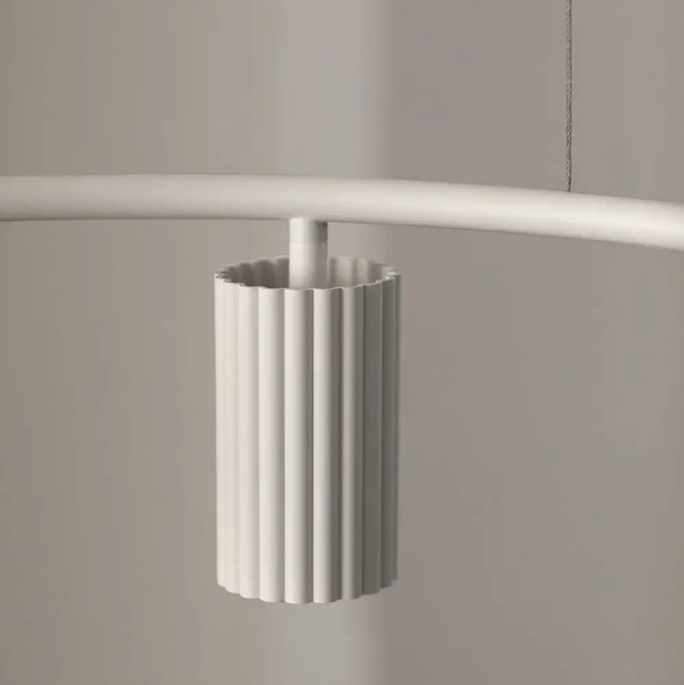 Lampa wisząca Donna sprawia wrażenie miękkiej, plisowanej tkaniny, chociaż w rzeczywistości wykonana została z lekkiego aluminium. Forma tej nieszablonowej oprawy zainspirowana została eleganckimi materiałami używanymi w modzie i wyzwaniami związanymi z tworzeniem wyrafinowanej miękkości, przy użyciu twardego materiału zamiast tkaniny.