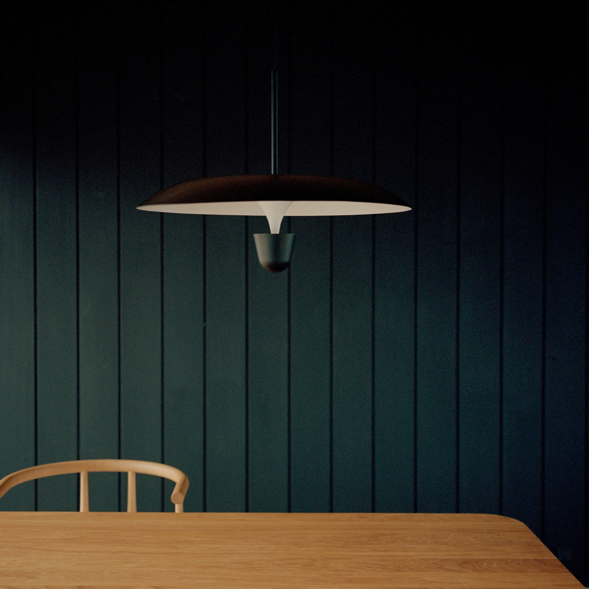 Lampa wisząca z kolekcji Kantarell duńskiej marki New Works. Jej charakterystyczny, organiczny kształt inspirowany naturą przypomina formę trąbki – światło wydobywa się z centralnego punktu i miękko rozprasza po łagodnie wygiętym kloszu. Harmonijna gra pomiędzy dwoma koncentrycznymi kręgami; reflektorem i kloszem tworzy wyrafinowaną, graficzną sylwetkę, która natychmiast przyciąga wzrok.