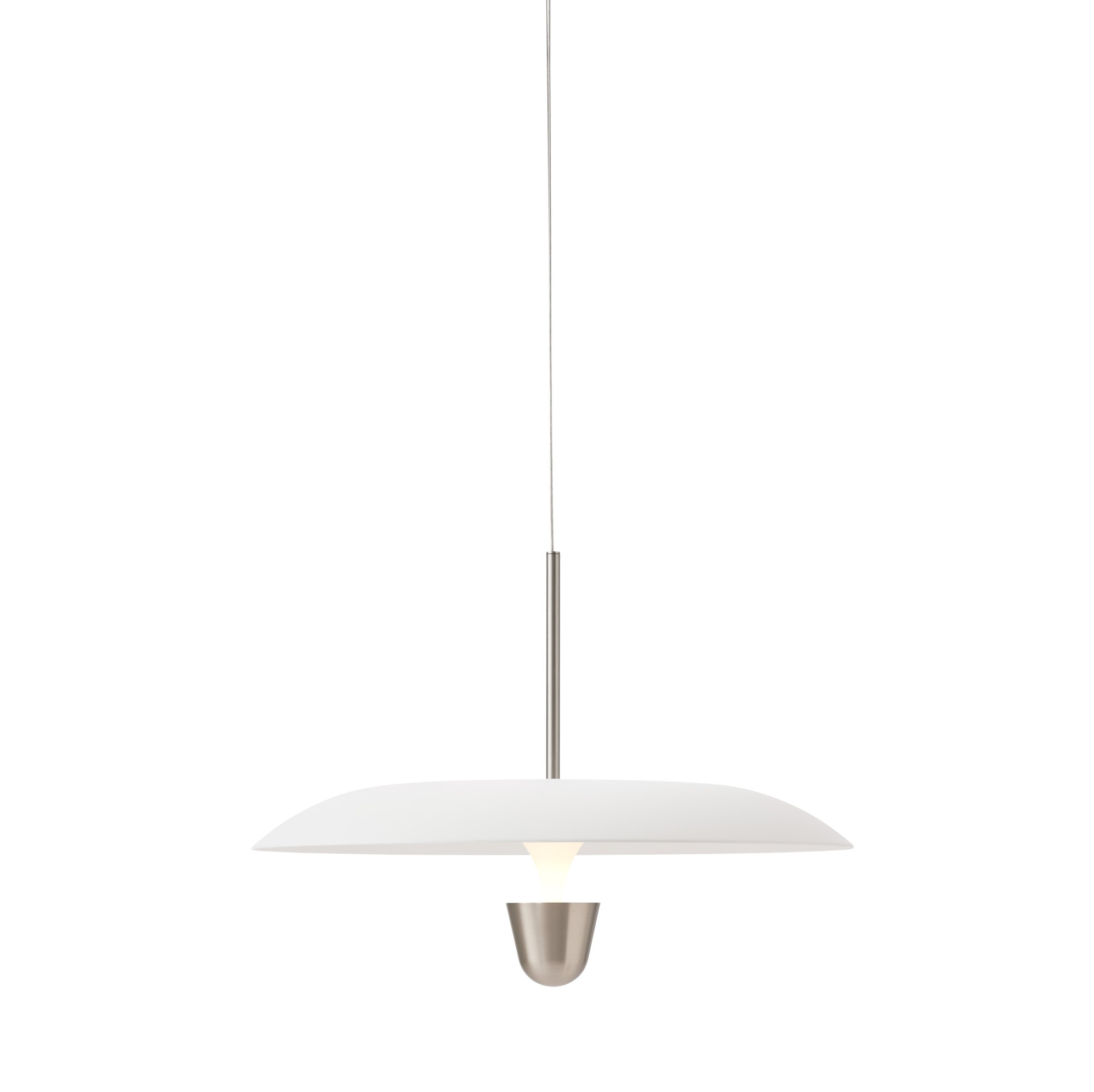 Tę nowoczesną lampę wiszącą wykonano z aluminium i stali. Model dostępny jest w dwóch wersjach kolorystycznych: niklowanej lub czarnej. Wbudowane źródło LED (2700 K) zapewnia ciepłe, nastrojowe światło idealne do nowoczesnego salonu lub eleganckiej jadalni. Ściemniacz fazowy pozwala dopasować intensywność światła do nastroju, a ponadczasowy design sprawia, że Kantarell doskonale odnajduje się także we wnętrzach publicznych.