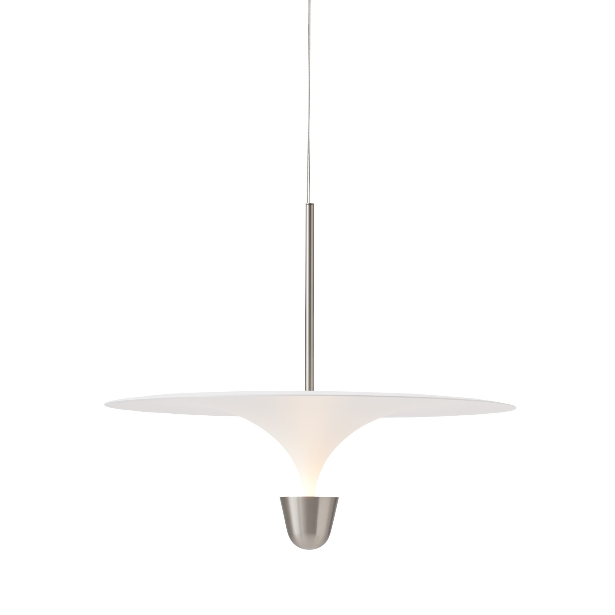 Lampa wisząca z kolekcji Kantarell duńskiej marki New Works łączy skandynawski design z funkcjonalnością. Jej organiczny, trąbkowaty kształt wydobywa światło z centralnego punktu i miękko rozprasza je po łagodnie wygiętym kloszu. Gra pomiędzy reflektorem a kloszem tworzy elegancką, graficzną sylwetkę, która natychmiast przyciąga wzrok i definiuje przestrzeń.