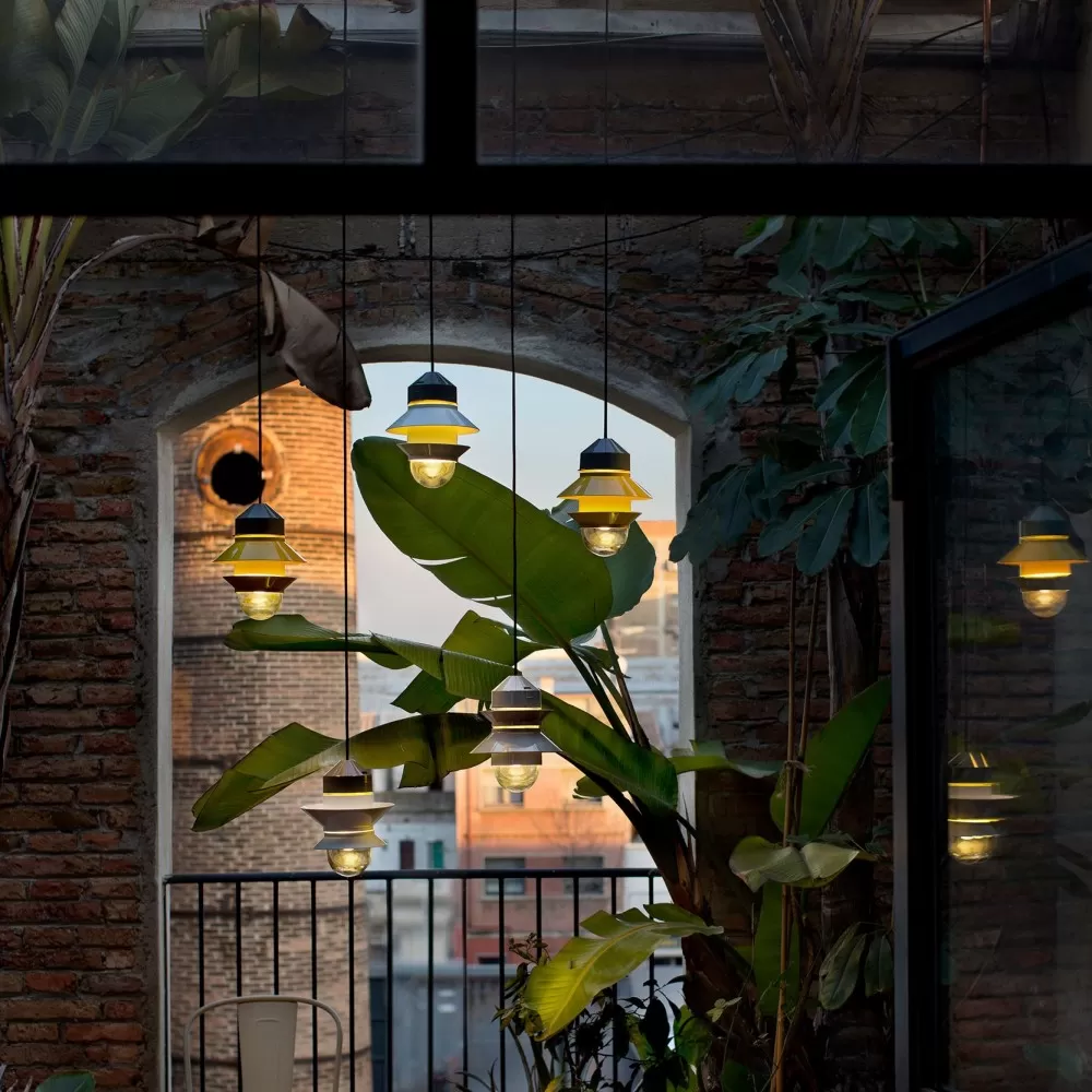 Lampa Santorini od Marset to elegancka i funkcjonalna lampa wisząca, której design inspirowany jest malowniczą grecką wyspą Santorini. Projektanci czerpali inspirację z tradycyjnych latarni rybackich, wprowadzając do lampy charakterystyczny klimat wyspy. Kolekcja konfigurowalnych lamp zewnętrznych umożliwia tworzenie różnych aranżacji świetlnych – użytkownicy mogą dowolnie ustawiać liczbę abażurów, ich kolejność, położenie i kierunek, co pozwala uzyskać zarówno światło bezpośrednie, jak i odbite.