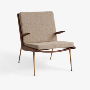 Ten klasyczny fotel z połowy wieku autorstwa duetu Hvidt & Mølgaard nie ma żadnych dodatków. Od ręcznie polerowanej, drewnianej ramy po smukłe mosiężne nogi, Boomerang jest arcydziełem duńskiego designu. Projektanci wykorzystali swoje doskonałe umiejętności techniczne aby zmaksymalizować komfort. Wygląd tego wyjątkowego fotela jest wprawdzie współczesny aczkolwiek Boomerang stawia na nieco inną zasadę nowoczesności; krótko mówiąc ten projekt to zrozumienie tradycyjnych technik rzemieślniczych z chęcią tworzenia elementów, które będą łatwe w montażu i produkcji na masową skalę..